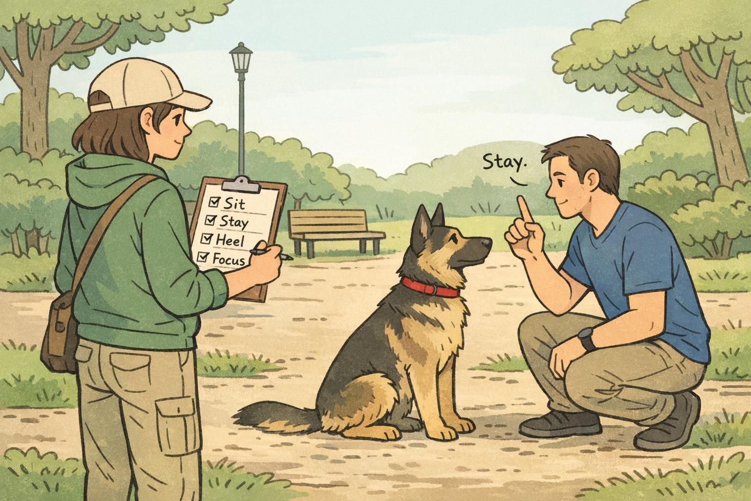 Use predictable cues (like “heel” and “settle”), reward calm behavior, and keep early exposures short. A familiar routine—water break, quick sniff, then focus—often reduces anxiety.